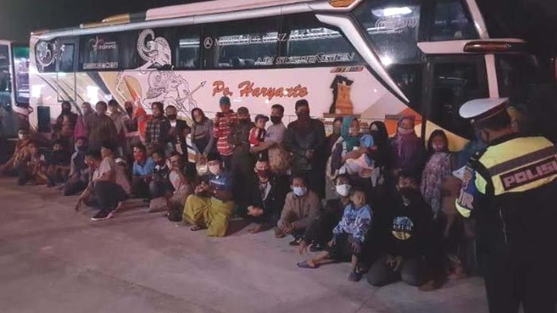 Dwi Sumrahadi menjelaskan bahwa rombongan tiga bus itu ditumpangi para pemudik dewasa, anak-anak bahkan balita. Setelah dilakukan pemeriksaan dokumen kesehatan untuk perjalanan, hanya satu orang yang bisa menunjukkan.
