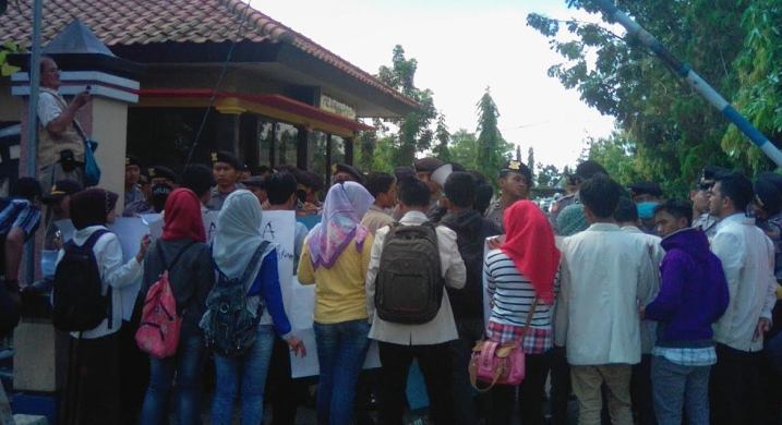 MataMaduraNews.com-BANGKALAN-Puluhan aktifis Aliansi Mahasiswa STKIP Bangkalan yang mengatasnamakan Aliansi Bem, HMJ,UKM STKIP PGRI Bangkalan (ABHU)  mendemo Polres Bangkalan, Selasa (29/8/2016).