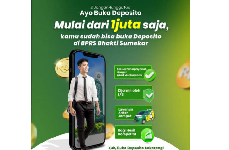 matamaduranews.com-SUMENEP – BPRS Bhakti Sumekar meluncurkan kampanye “Jangan Nunggu Tua” pada Januari 2026 dengan menghadirkan produk Deposito Syariah yang bisa dibuka mulai Rp1 juta.