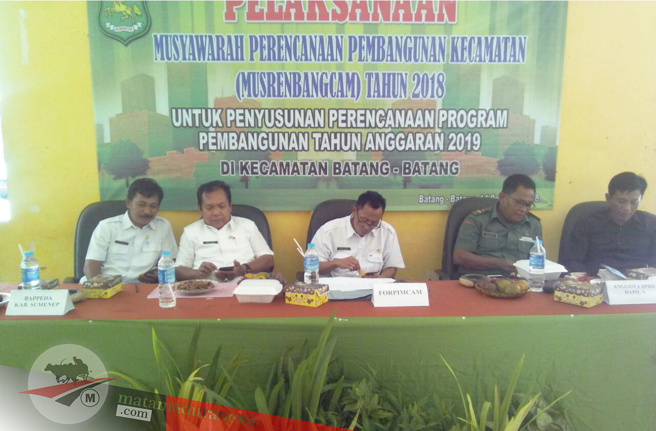 MataMaduraNews.com–SUMENEP-Musyawarah Perencanaan Pembangunan Kecamatan (Musrenbangcam) Tahun Anggaran 2018 di Kecamatan Batang-Batang, Sumenep, Madura, Jawa Timur, berjalan lancar.