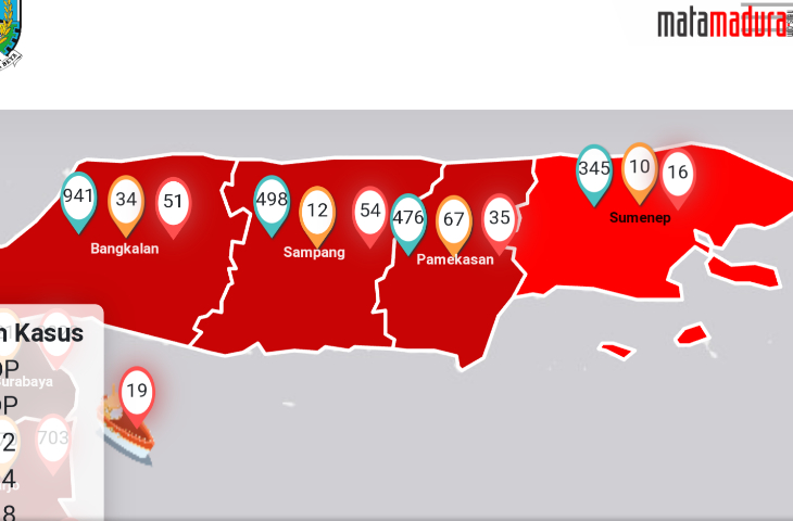 Kasus positif pertama Covid-19 di Madura bermula dari Pamekasan pada Minggu (29/3/2020). Kemudian disusul Bangkalan pada Kamis (9/4/2020) dan Sumenep Jumat (24/4/2020).