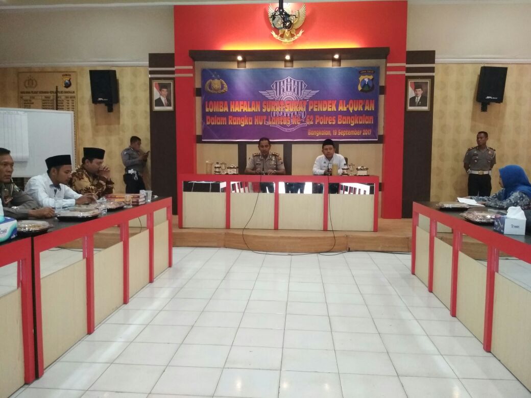 MataMaduraNews.comBANGKALAN – Sebanyak 40 Siswa dan Siswi tingkat SMA sederajat mengikuti lomba hafalan surat-surat pendek Al Quran, Selasa (19/09/2017). Lomba tersebut diadakan oleh Satuan Lalu Lintas (Satlantas) Polres Bangkalan dalam rangkaian peringatan HUT Lantas yang ke 62.
