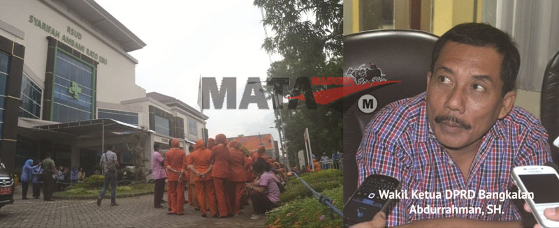 MataMaduraNews.com–BANGKALAN-Aksi demo ratusan karyawan RSUD Syamrabu Bangkalan, Madura, Jawa Timur, terkait macetnya pembayaran uang jasa pelayanan, membuat Wakil Ketua DPRD Bangkalan, Abdurrahman, angkat bicara. Legislatif asal Fraksi Demokrat ini mempertanyakan soal keterlambatan pembayaran yang belum dibayar selama 6 bulan tersebut hingga menimbulkan gejolak dari para karyawan.