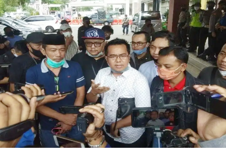 Dalam aksi orasi, mereka menyampaikan aspirasi menolak perpanjangan penerapan Pembatasan Sosial Berskala Besar (PSBB) jilid 3 di Surabaya.